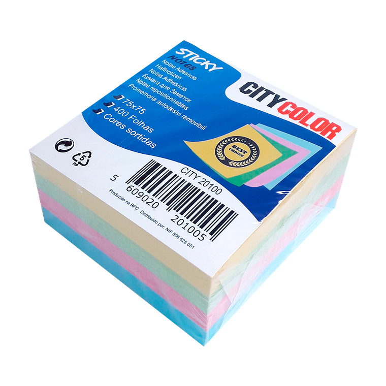 NOTAS ADESIVAS CITYCOLOR 75X75 BLOCO C/400 FOLHAS 5 CORES SORTIDO SUAVE